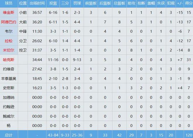 东契奇贡献29分11板10助三双,里夫斯26分11助两双到手,拉拉维亚25分进账,合计80分。